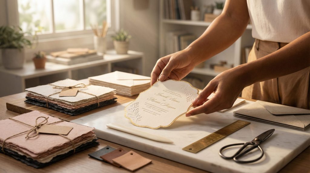 Um design lindo pode ser arruinado por uma impressão de baixa qualidade ou pela escolha errada do papel. Entender o básico sobre os materiais é crucial para garantir que o resultado físico seja fiel à prova digital aprovada. A materialidade do convite é o que agrega valor à peça.
