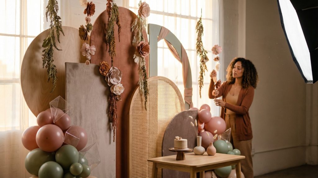 Não basta ter belos enfeites; é preciso saber onde colocá-los. A composição do cenário envolve regras de design, fluxo de pessoas e pontos de interesse visual. Hoje, cada canto da festa é uma oportunidade para uma foto, exigindo um planejamento detalhado do layout.