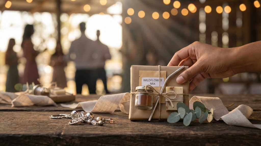 Para o público adulto, a funcionalidade e a qualidade superam a quantidade. Em casamentos ou eventos corporativos, itens como velas aromáticas artesanais, sabonetes naturais, azeites aromatizados ou mini garrafas de bebidas premium são muito bem aceitos. O objetivo é oferecer algo que o convidado integre à sua rotina de bem-estar ou gastronomia.