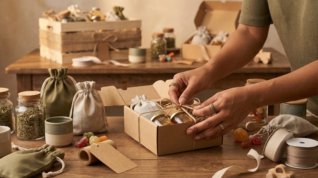 Uma vez definido o perfil do público, entra a fase criativa de seleção dos itens. A tendência atual foge das bugigangas de plástico e abraça experiências sensoriais, kits “faça você mesmo” (DIY) e produtos artesanais. Montar kits que contem uma história ou convidem o hóspede a realizar uma atividade em casa é uma forma poderosa de manter a memória do evento viva.