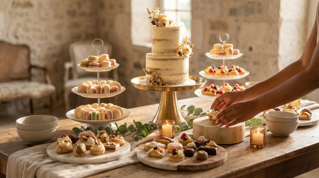 Definir o estilo da apresentação é o primeiro passo para uma execução bem-sucedida. Existem duas abordagens principais: a mesa posta, onde a sobremesa é servida individualmente aos convidados sentados, e a ilha de sobremesas (ou mesa de doces), onde os convidados se servem livremente. Cada modalidade exige uma estratégia diferente de decoração e disposição dos utensílios.