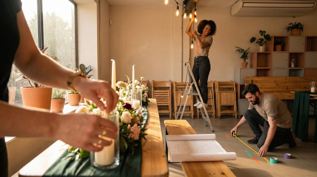 A montagem de um evento é o momento da verdade. É a etapa onde todo o planejamento teórico encontra a realidade física do espaço, e onde a diferença entre um decorador amador e um profissional se destaca. Muitas vezes, o sucesso de uma festa não está apenas na beleza das peças escolhidas, mas na logística eficiente e na capacidade de resolver problemas de última hora. Um ambiente bem montado deve ser seguro, funcional e visualmente impactante, sem que os convidados percebam o “caos” que pode ter ocorrido horas antes nos bastidores.